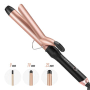 Curling max ferro arricciacapelli in ceramica 3 tipologie di diametro 9 - 19 - 25 mm di rivestimento in tormalina in ceramica può fornire ricci elastici lisci e duraturi, onde e piccoli anelli per capelli medi e lunghi.