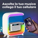 Non è solo una pratica lampada da comodino, ma anche una cassa bluetoothche puoi collegare al tuo cellulare ed ascoltare tutti i tuoi brani, riproduzione FM illimitata e varie modalità di riproduzione.