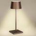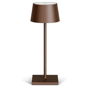 Lampada ricaricabile da tavolo moderna, ricarica che avviene tramite cavo sotto la base, con corpo in alluminio verniciato, diffusore in policarbonato e fonte luminosa a LED.