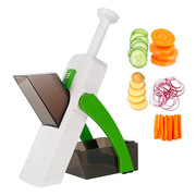 Un accessorio da cucina completo per diversi tipi di affettare come tagli di dadi, tagli dritti, bastoni e julienne. Ideale per affettare mela, barbabietola, carote, prosciutto, zucchine, patate, ecc.