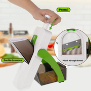 Perfetta per tagliare ed affettare qualsiasi tipo di frutta e verdura con 30 tagli diversi, facilissimo da usare, basta premere sul manico e affettare in pochi secondi.
