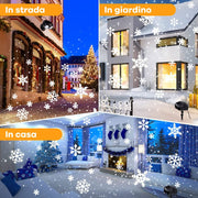 Proiettore con doppia luce a forma di fiocchi di neve e altri vari simboli perfetto per creare la più bella e inimitabile atmosfera Natalizia per i tuoi esterni e mostrala a tutti! Oltre ai fiocchi di neve riflette anche l'effetto della neve che cade e molti altri simboli.
